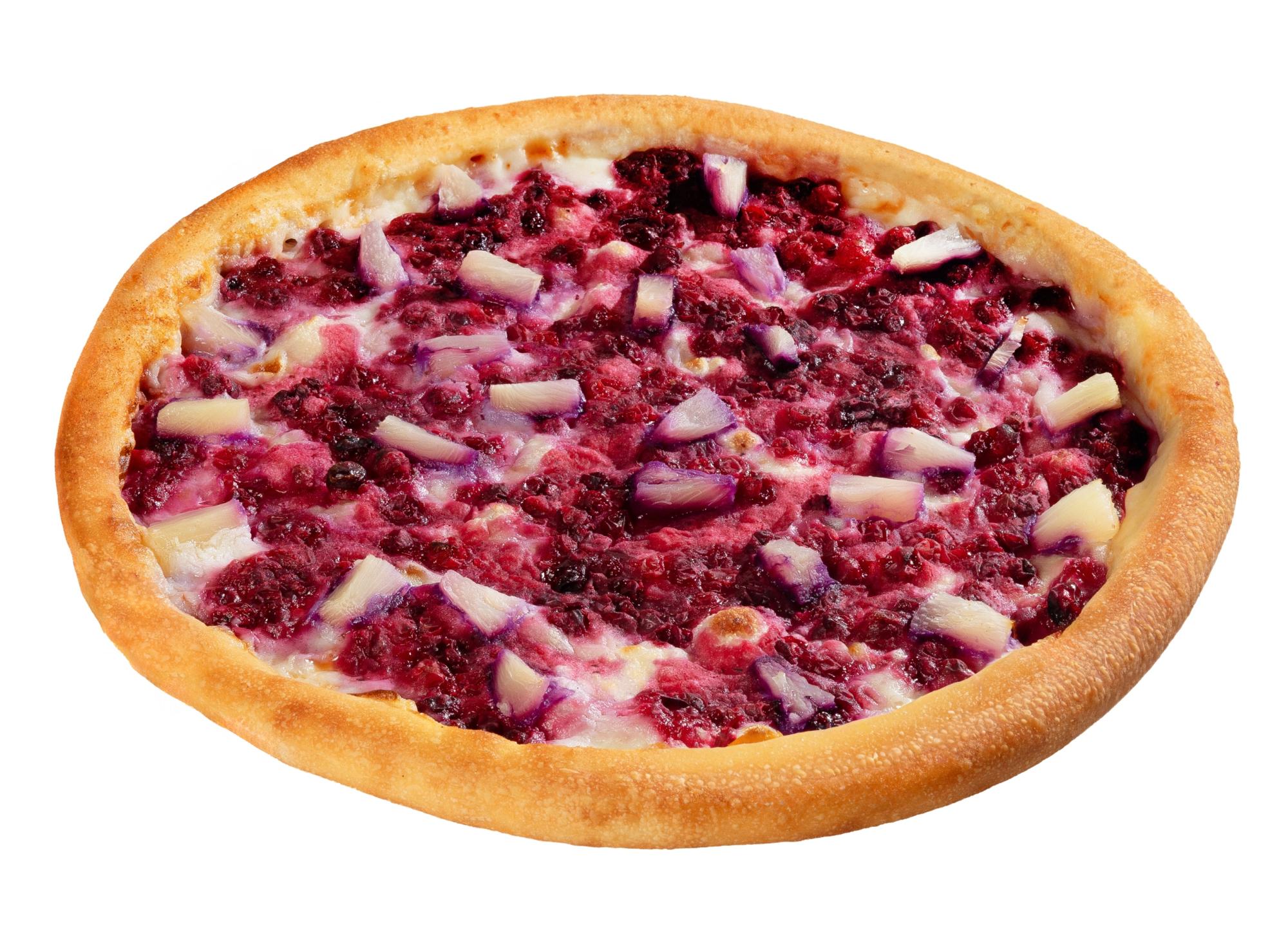 Для любителей кисло-сладкого: пицца с брусникой, ананасом и фирменным пломбирным соусом.