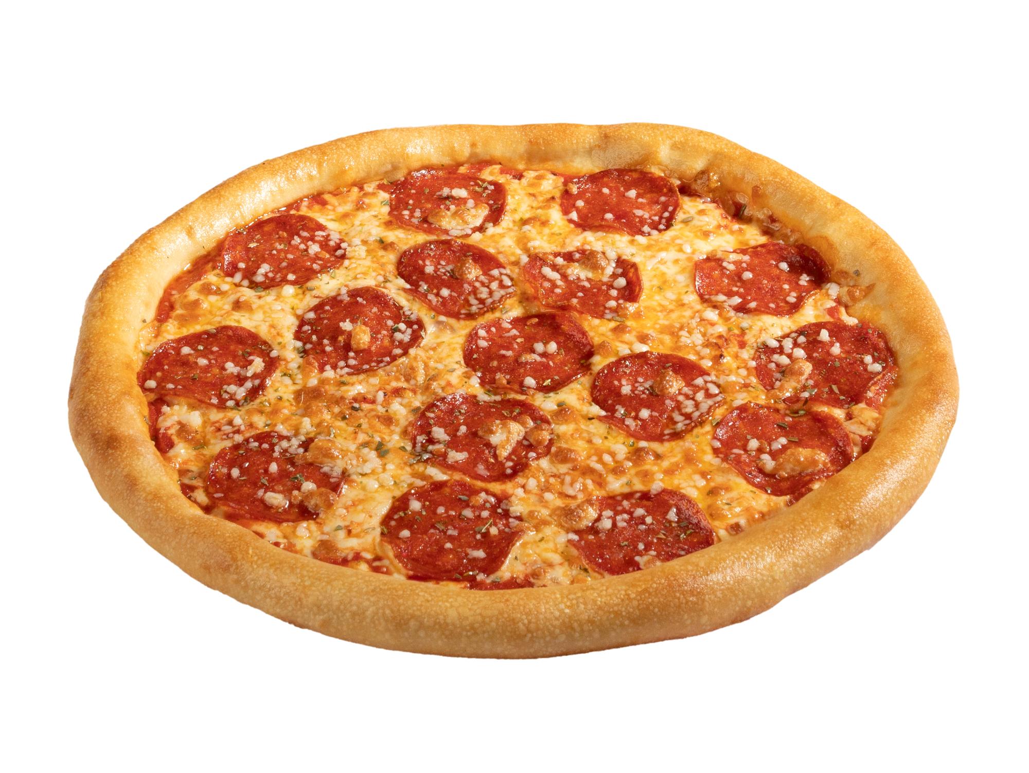 Любимая многими пицца на тонком тесте с пепперони и сыром моцарелла и фирменным томатным соусом.